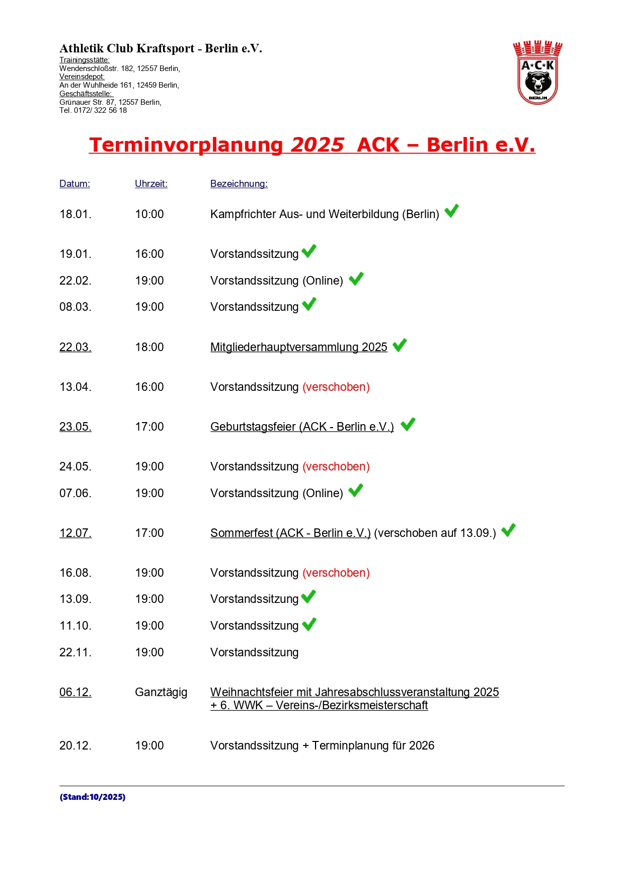 Die Planung für unsere Vereinstermine und Wettkämpfe 2025 steht, die aktuelle Übersicht gibt’s ab sofort hier!